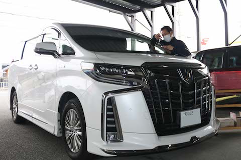 アルファードのお客様、ドアのへこみ修理でご来店。