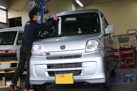 部品を外さず、車専用ステッカーを貼り付けることで、