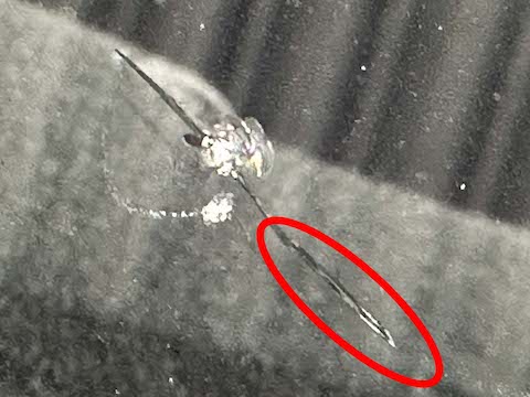 何か鋭い物で突いて、傷と深い凹みができていました。