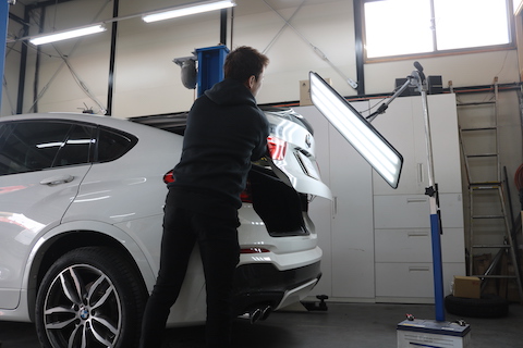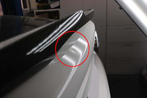 BMW リアゲートのへこみを塗装しないデントリペア修理
