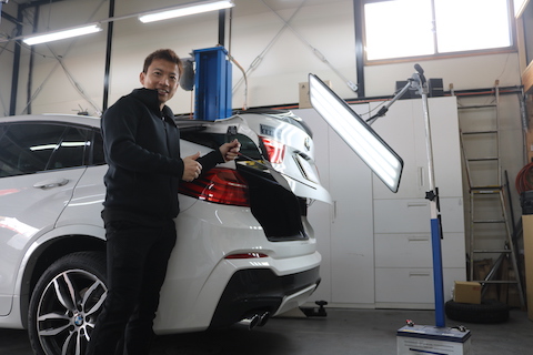 BMWのお客様、リアゲートにへこみができたとご相談。
