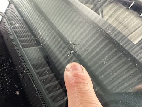 フロントガラスにパチッと音がして確認するとひび割れしている!と、