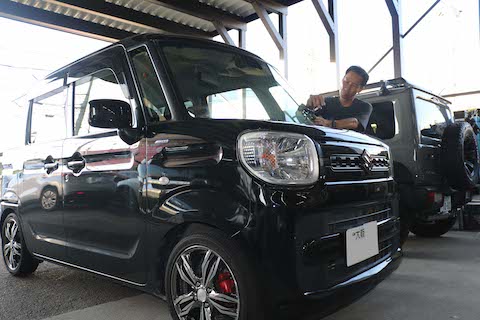 スペーシアのお客様、フロントガラスがひび割れしているとご相談。