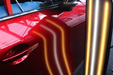 フェンダーのへこみも瞬時に塗装せずデントリペア修理