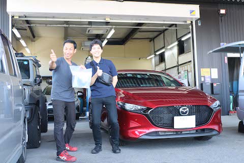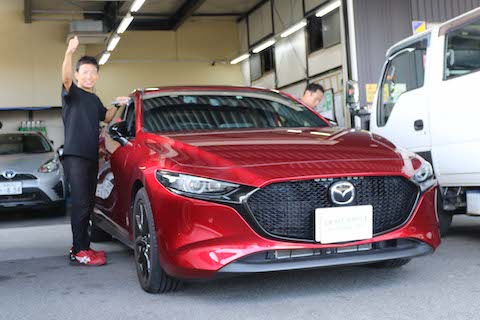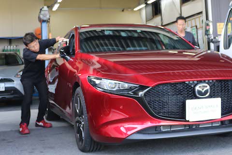 マツダ3のお客様、買ったばかりの愛車にドアパンチ被害でへこみ!