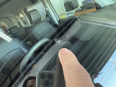 冬になると、飛び石によるフロントガラスヒビ割れが続出します。