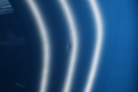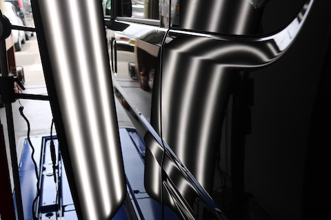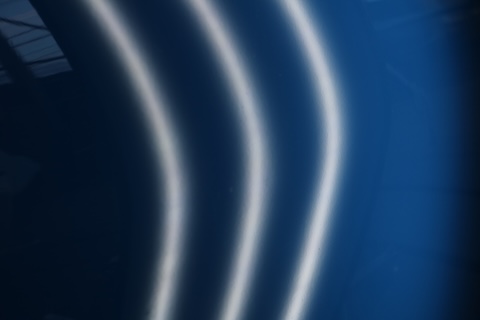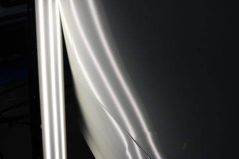 専用ライトで歪みを見極めながら、