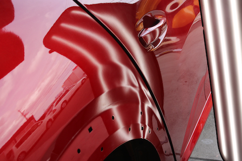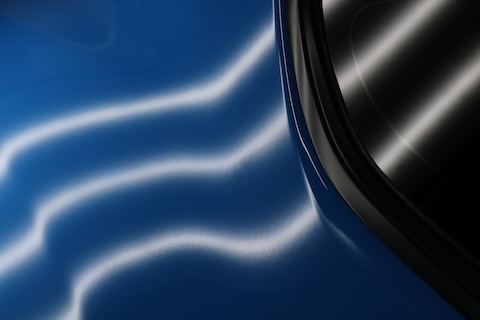 パテを使わず、鉄板そのものをミリ単位で整形する修理方法。