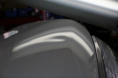 | ボンネット部にちょっと大きめのへこみ。もの凄く目立っておりました。 | デントリペアツールのアクセスは問題ありませんでした。 ボンネットのへこみ完成でございます。 | |