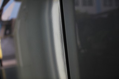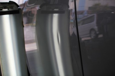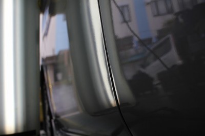 | まずこちらはフロントドアのふち。 開けた時に「ごつん」と当ててしまったへこみです。 | 施工後がこちら。 | |