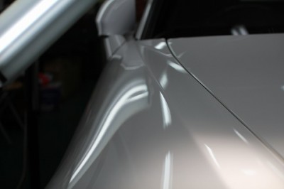 - へこみをデントリペアで精密修復!パールホワイトでも修理跡を最小限