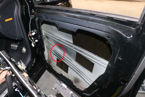 ドア内側の部品を外して、ドアパネル内側を確認すると、