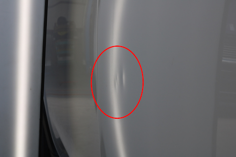 駐車場などで隣のお車のドアで当てられて、こんなヘコミが出来る事があります。