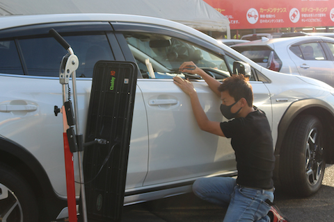- レヴォーグのルーフ凹みをデントリペアで修復!引っ張り修理で対応