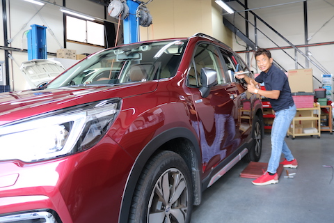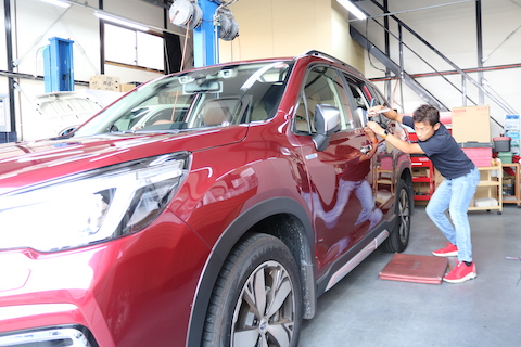 - レヴォーグのルーフ凹みをデントリペアで修復!引っ張り修理で対応
