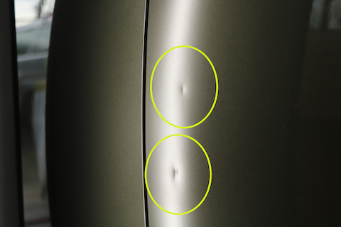 こんなヘコミはヘコミの裏を直接押して成形するデントリペアで修理すれば、