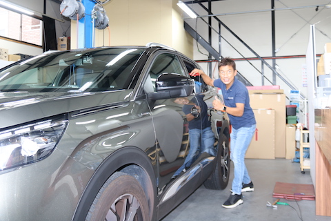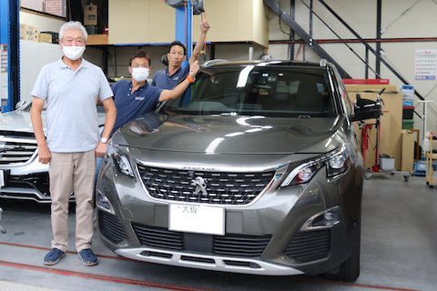 プジョー3008のお客様、ドアにヘコミが2箇所!