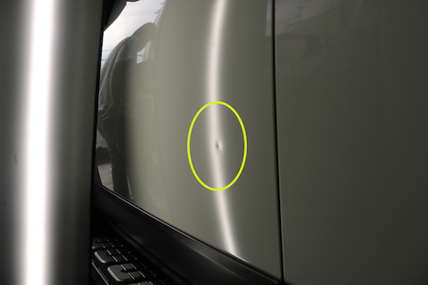 - ベンツのリアゲート凹みをデントリペアで修復!分厚い鉄板でも美しく復元