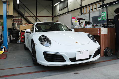 ポルシェ 718のお客様の愛車の運転席ドアにへこみ。