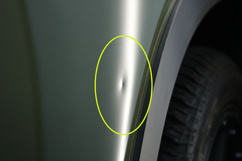 これだけのヘコミで高額な修理費はもったいないと思ってしまいますが、