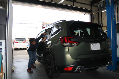 - レヴォーグのルーフ凹みをデントリペアで修復!引っ張り修理で対応
