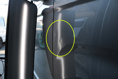 運転席ドア付近にヘコミが数カ所あって、複雑に歪んでいます。