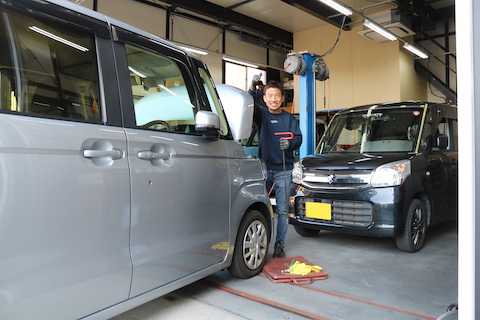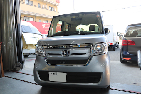 N-BOXのお客様、右タイヤ上あたりのフェンダーが複雑に凹んでいるとご相談。