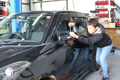 兵庫県よりスイフトのお客様、左ドア部分に大きなヘコミ!