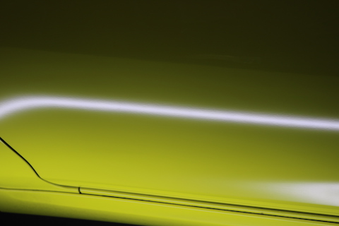 横に長いへこみ!!このぐらいなら再塗装せずに直せる方法がここにあります。それがデントリペア!!