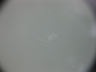 | ルーペにて拡大して撮影しているますが、今にもキズが伸びようとしていました。 このようになると早めのウインドリペアをオススメします。 |