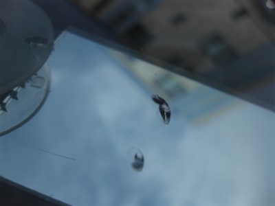 | オーナー様は、本当はフロントガラスを交換される予定だったそうですが、 当店のホームページ、ブログを見てここにお願いしてみようっとなったそうです。 本当に感謝感激でございます!! | 衝撃点が大きかったですが、無事に伸張することなくウインドリペア完成 でございます。 | |