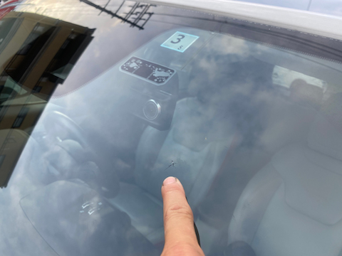 フロントガラスに飛び石被害でひび割れができてしまい、