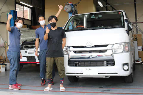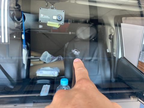 ハイエースのフロントガラス、大きなひび割れも修理!