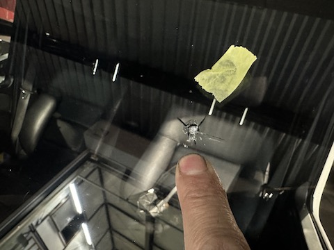 ゲレンデのお客様、フロントガラスに飛び石被害にあったと緊急連絡。