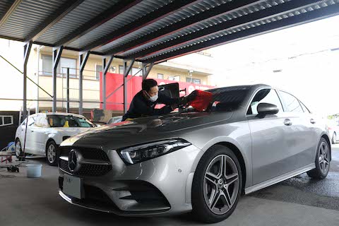 ベンツAクラスのお客様、フロントガラス下側にひび割れ傷があるとご来店。