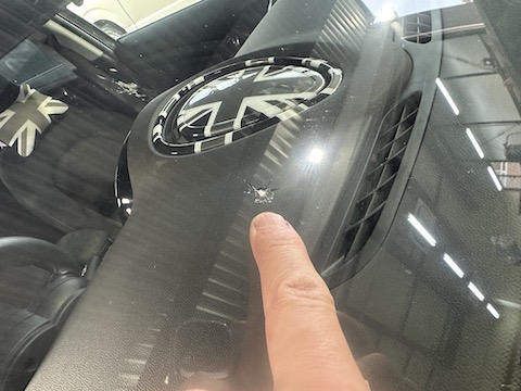 ミニのお客様、フロントガラスが割れてしまったとご来店。