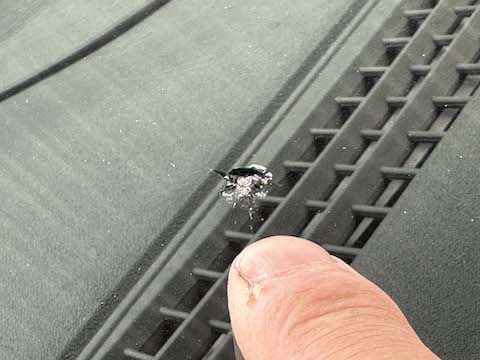 走行中に飛んできた小石などがフロントガラスにあたり、