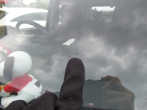 フロントガラスは、走行中に飛んできた小石が当たって割れる事があります!