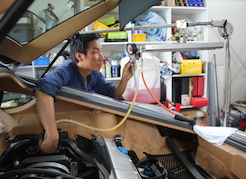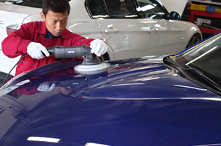 コーティング前にボディを磨いて塗装の輝きを出します -