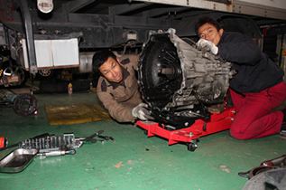 トラックのミッションが入らなくなった修理で、他業者様はクラッチオーバーホールの見積り20万円だったのを、原因を詳しく調べクラッチ操作部の交換だけで4万円で直す事が出来た。